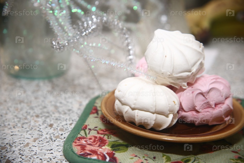 Вкусный ванильный зефир на тарелке. Концепция полезного питания и кулинарии