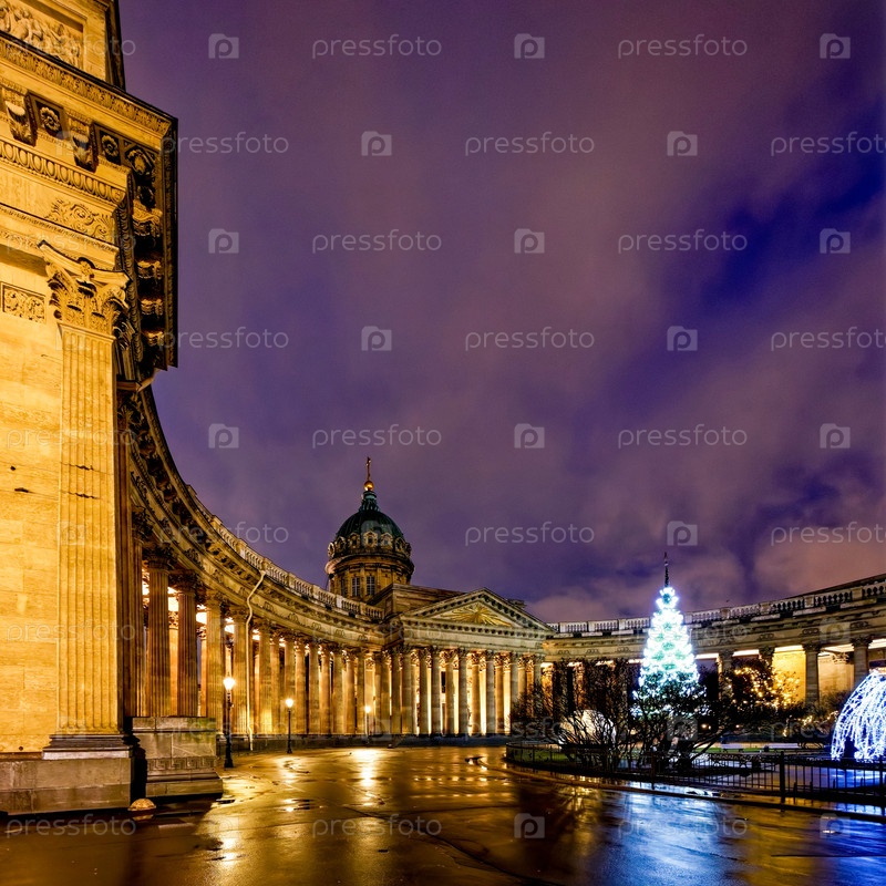 Новогодняя иллюминация у Казанского собора Санкт-Петербурга