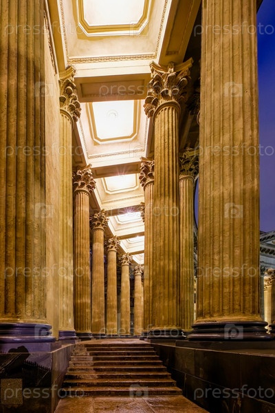 Колоннада Казанского кафедрального собора Санкт-Петербурга в сумерках