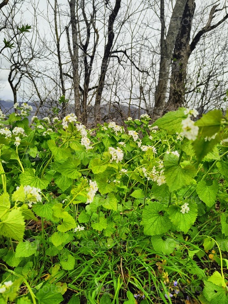 Дикая весенняя зелень и белые цветы в лесу, естественный фон, ботанические обои