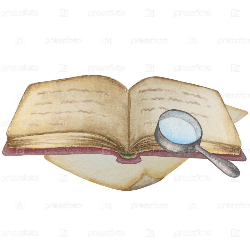 Нарисованный вручную акварельный набор иллюстраций различных книг, деревянная книжная полка, полная книг, стопка книг, свитки и бумага. Яркая иллюстрация для оформления книжного магазина или библиотеки, обложка, пакет, карточка