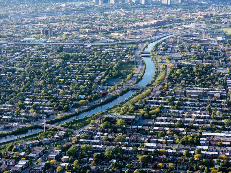 Вид с воздуха на район Верден недалеко от Иль-де-Сур и Лашинского канала в Монреале, Квебек, Канада. г