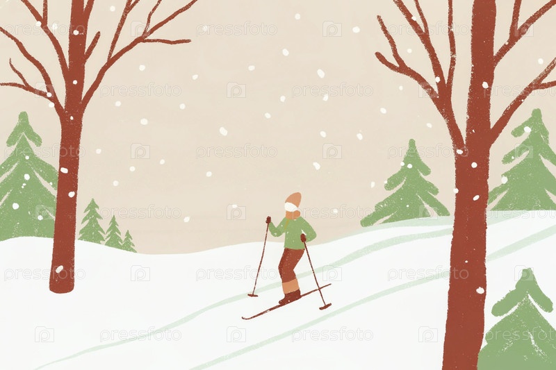 Кросс-кантри лыжник скользит по склонам в лесу