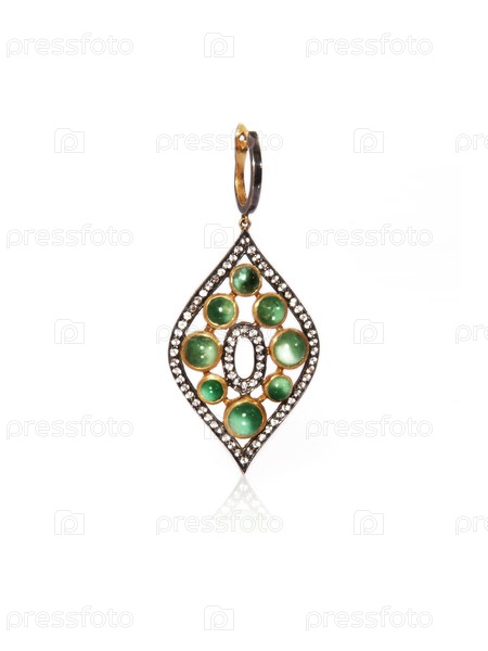 Золотая серьга с драгоценными камнями изолирована на белом фоне
