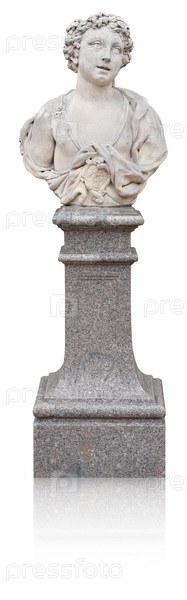 Аллегория месяца мая со знаком зодиака «Джемини» на медальоне. Старый мраморный бюст изолирован на белом фоне. Элемент дизайна с обрезкой пути