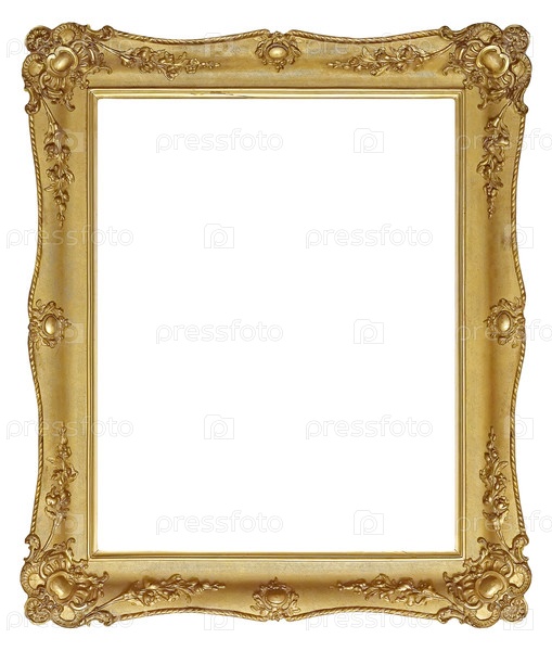 Золотая рама для картин, зеркал или фотографий, изолированных на белом фоне. Элемент дизайна с обрезкой пути