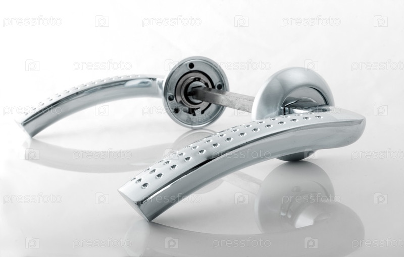 Серебряная дверная ручка изолирована на белом фоне