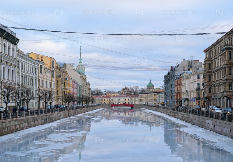 Санкт-Петербург, Россия. Зимний вид на реку Мойку (Мойка) с Голубого моста