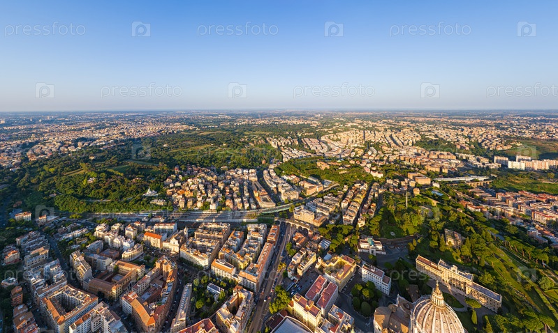 Рим, Италия. Панорама города в летнее утро. Солнечная погода. Вид с воздуха