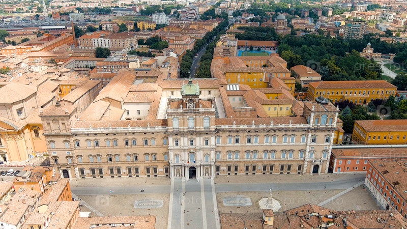 Модена, Италия. Дворец герцога Модены. Исторический центр. Лето, вид с воздуха