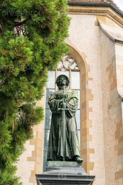 Цюрих, Швейцария. Памятник Ульриху Цвингли. Памятник был установлен в 1885 году. Текст на постаменте гласит: Ульрих Цвингли 1 января 1484 — 11 октября 1531