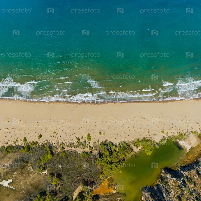 Дальян, Турция. Вид с высоты птичьего полета на Черепашьий пляж Изтузу нетронутой береговой линии с волновыми узорами и нетронутыми золотыми песками сверху. Вид с воздуха