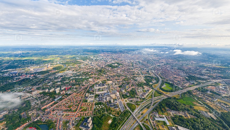 Гент, Бельгия. Промышленная зона. Панорама города. Летний день, облачная погода. Вид с воздуха