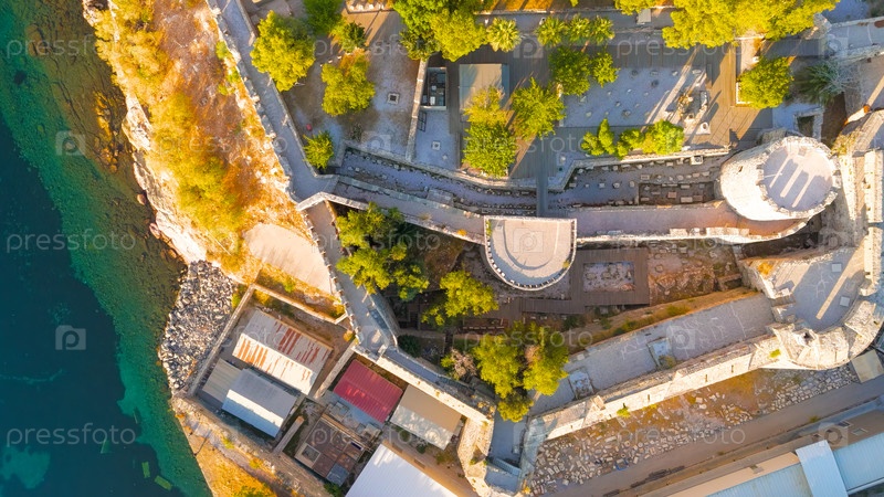Бодрум, Турция. Эпический беспилотный снимок замка Бодрум - идеальный контент в социальных сетях для влиятельных людей и туристических страниц. Вид с воздуха