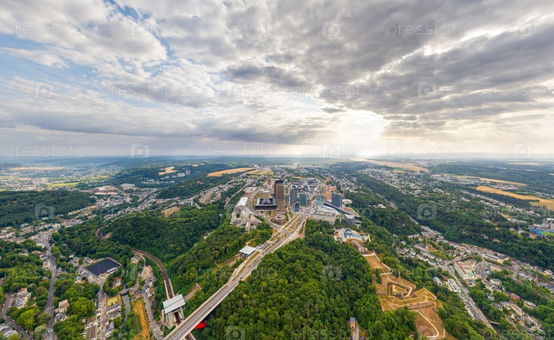 Люксембург, Люксембург. Панорама города. Летний день, облачная погода. Вид с воздуха