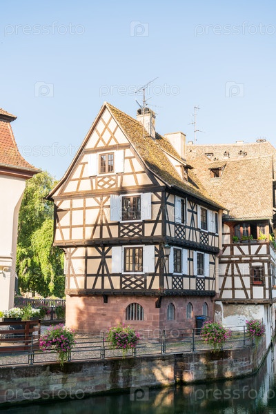 Страсбург, Франция. Маленький квартал Франции. Исторические дома на берегу реки Илль