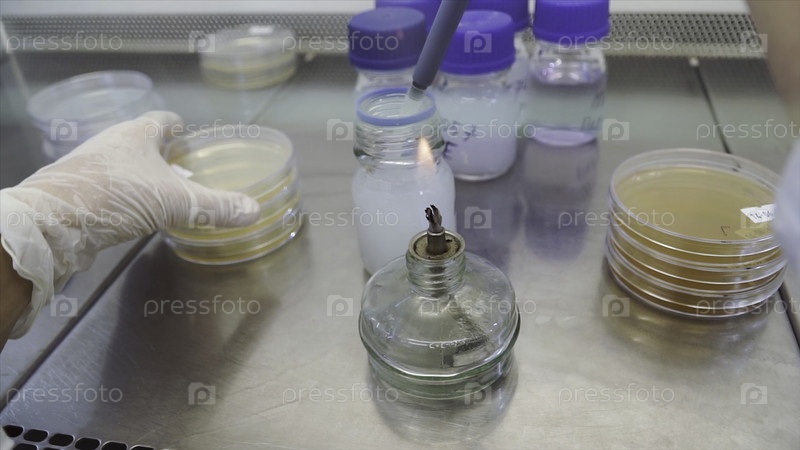 Испытание пламени Bunsen Burner в научной лаборатории. Клип. Пламя трубки в лаборатории микробиологии
