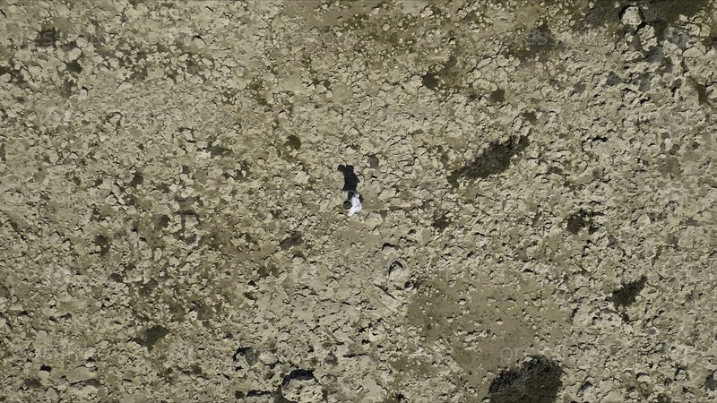 Вид на человека, бегущего по пустыне. Сток. Путешественник в поисках приключений