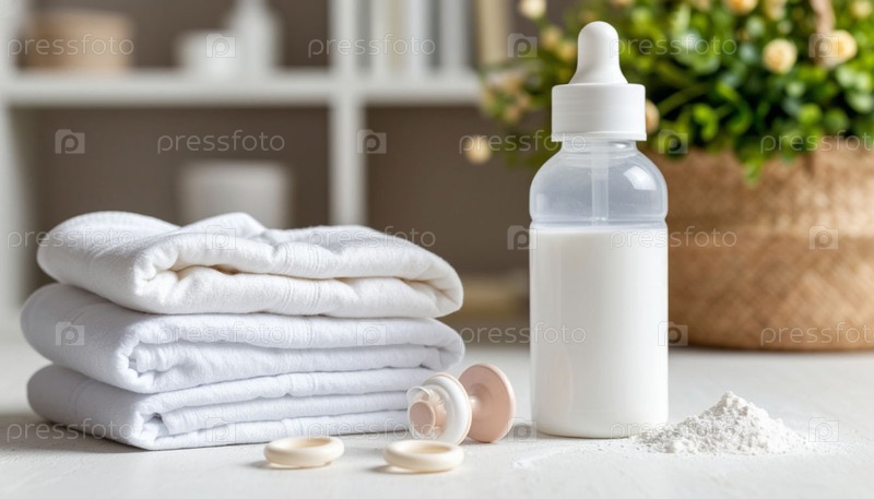 Детские аксессуары для новорожденных на столе. Сгенерированный ИИ