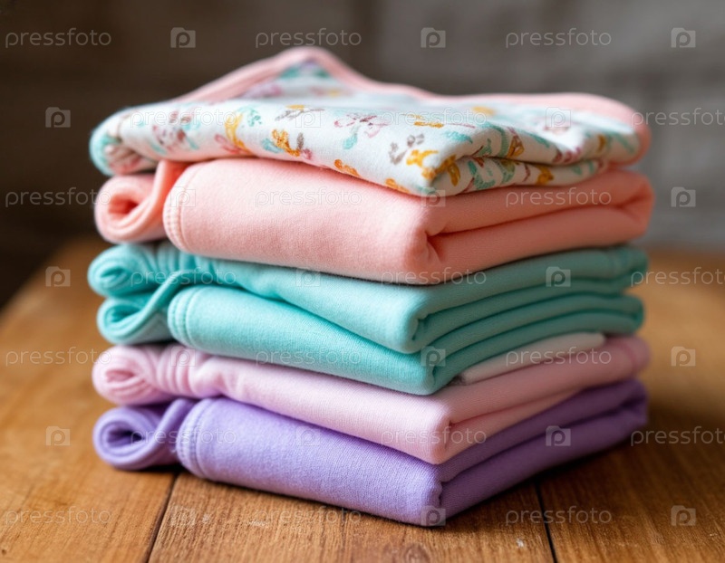 Детская одежда и подгузники уложены на стол