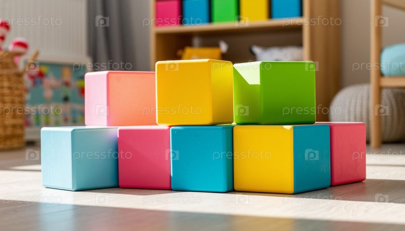 Детские игрушечные кубики в пастельных тонах. Сгенерированный ИИ