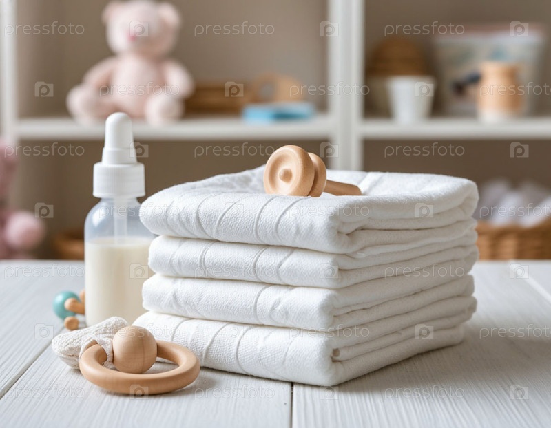Детские аксессуары для новорожденных на столе. Сгенерированный ИИ