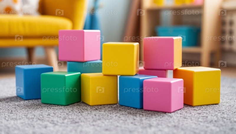 Детские игрушечные кубики в пастельных тонах. Сгенерированный ИИ