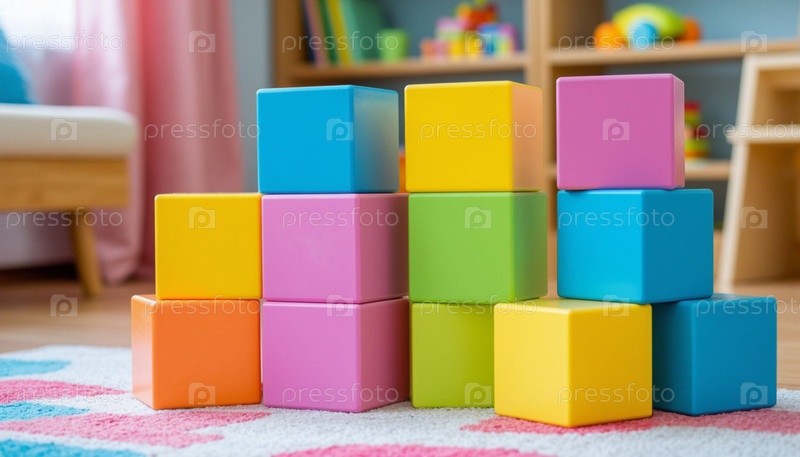 Детские игрушечные кубики в пастельных тонах. Сгенерированный ИИ