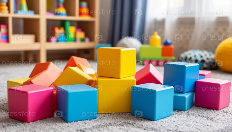 Детские игрушечные кубики в пастельных тонах. Сгенерированный ИИ