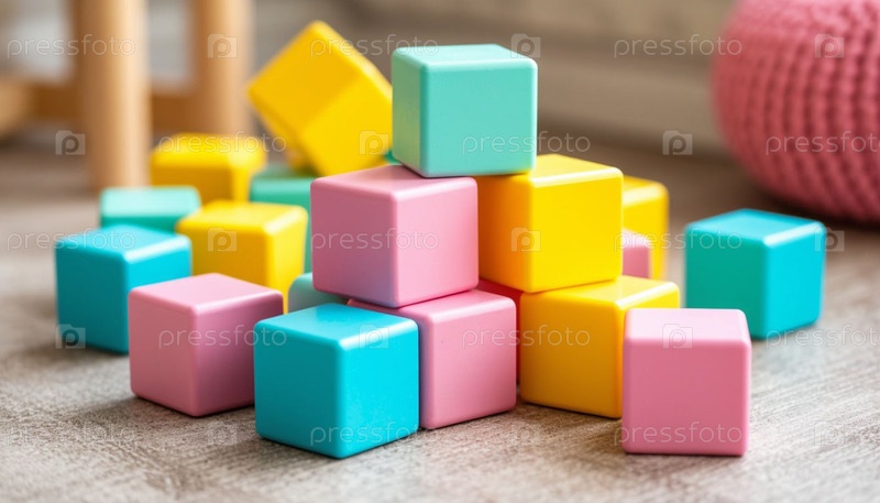 Детские игрушечные кубики в пастельных тонах. Сгенерированный ИИ