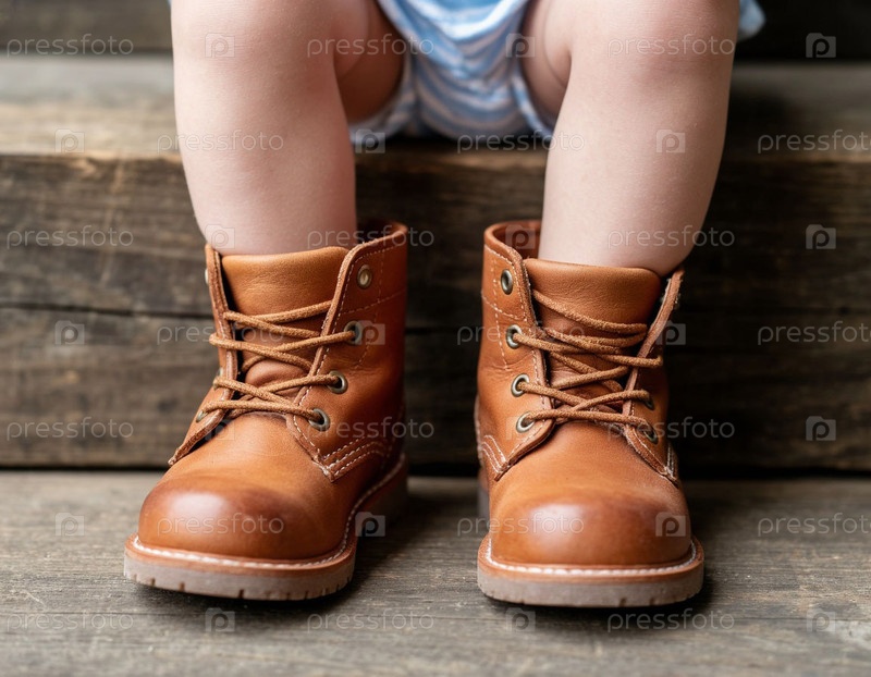 Детские ноги в коричневых кожаных сапогах. Сгенерированный ИИ