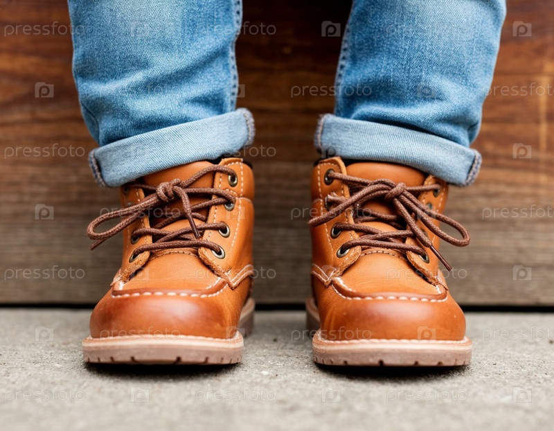 Детские ноги в коричневых кожаных сапогах. Сгенерированный ИИ