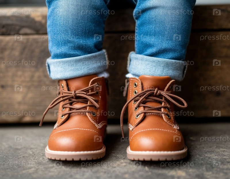 Детские ноги в коричневых кожаных сапогах. Сгенерированный ИИ