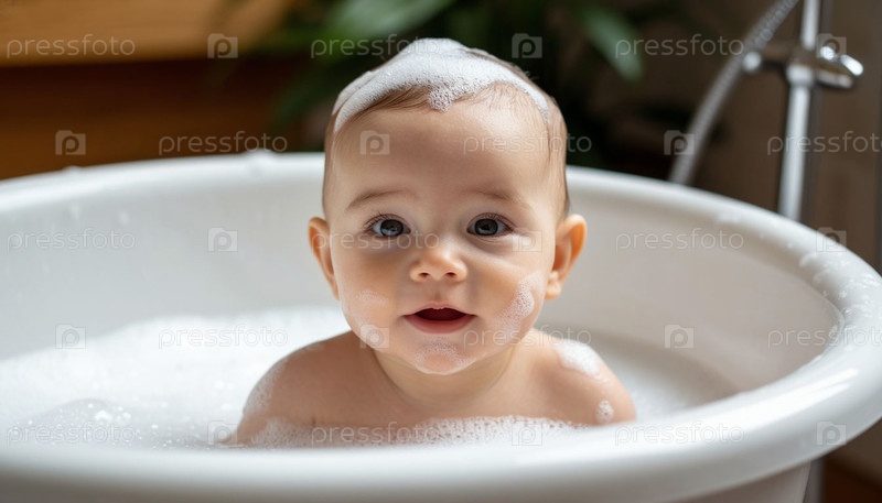 Купать ребенка в ванне. Сгенерированный ИИ