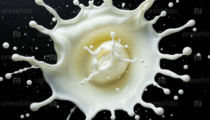 Абстрактный молочный брызг на черном фоне. Сгенерированный ИИ