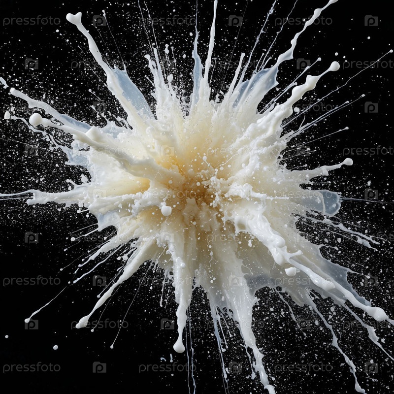 Взрыв молока на черном фоне. Создано ИИ