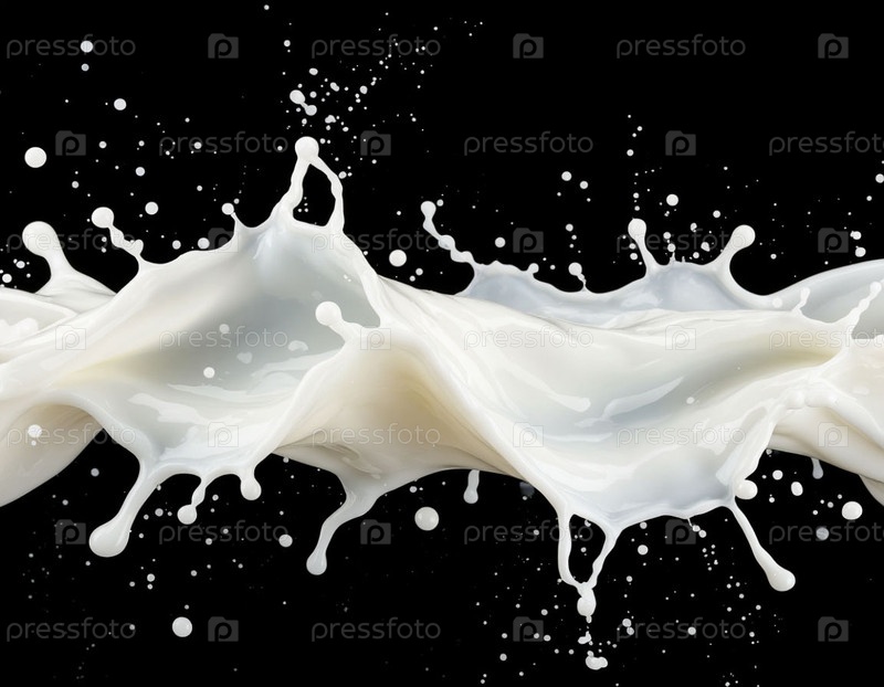 Абстрактный молочный брызг на черном фоне. Сгенерированный ИИ