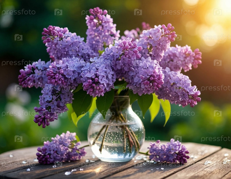 Сирень в стеклянной вазе. Сгенерированный ИИ