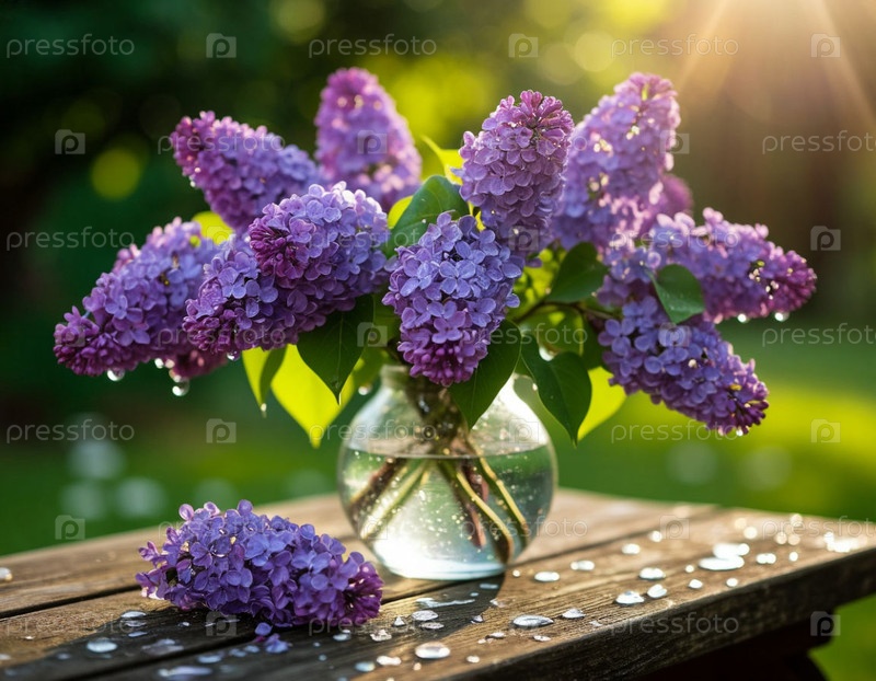 Сирень в стеклянной вазе. Сгенерированный ИИ