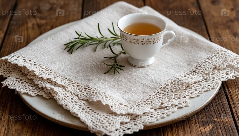 Полотенца для льняного стола с кружевом. Генерируется ИИ