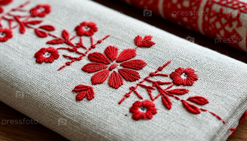 Льняная ткань с вышивкой. Генерируется ИИ