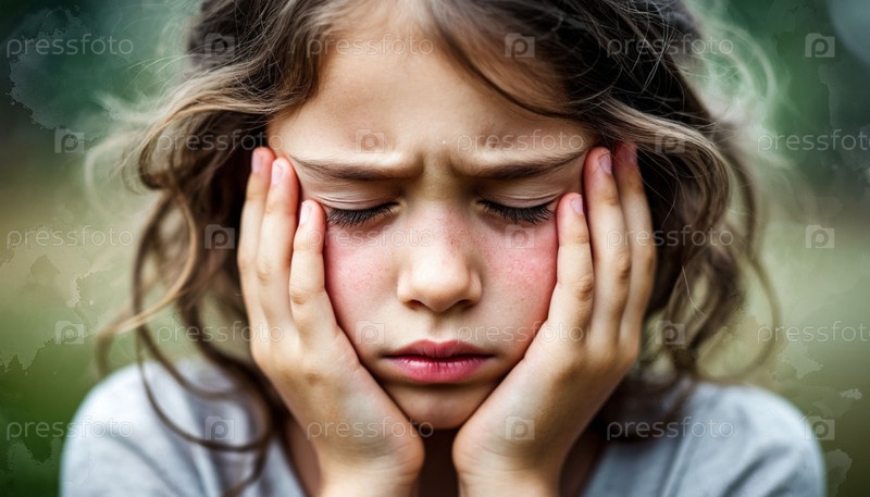 Маленькая девочка расстроена крупным планом. Созданный ИИ,