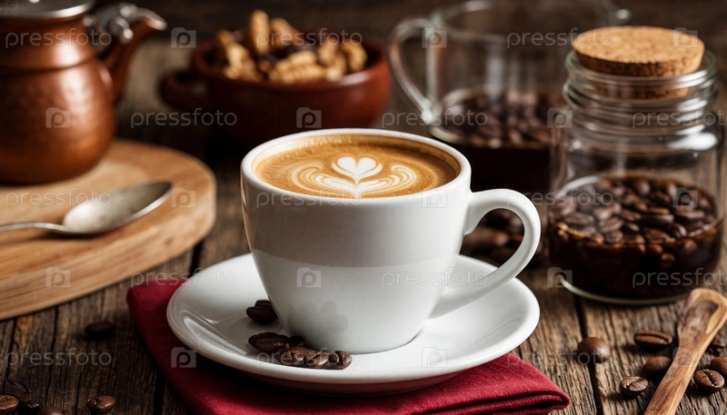 Чашка кофе на темном кухонном столе, созданная ИИ