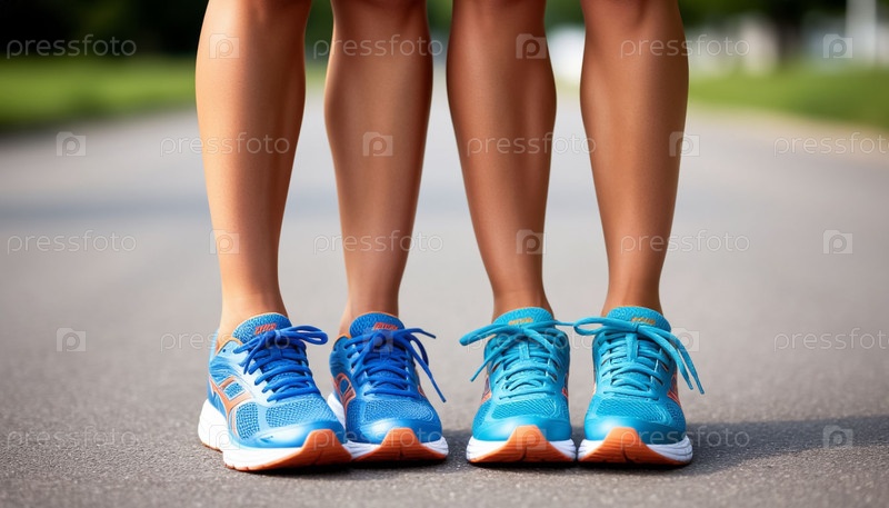 Ноги в беговых кроссовках – понятие здорового образа жизни и спорта. Генерируется ИИ