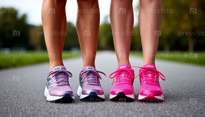 Ноги в беговых кроссовках – понятие здорового образа жизни и спорта. Генерируется ИИ