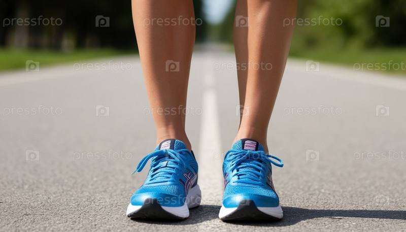 Ноги в беговых кроссовках – понятие здорового образа жизни и спорта. Генерируется ИИ