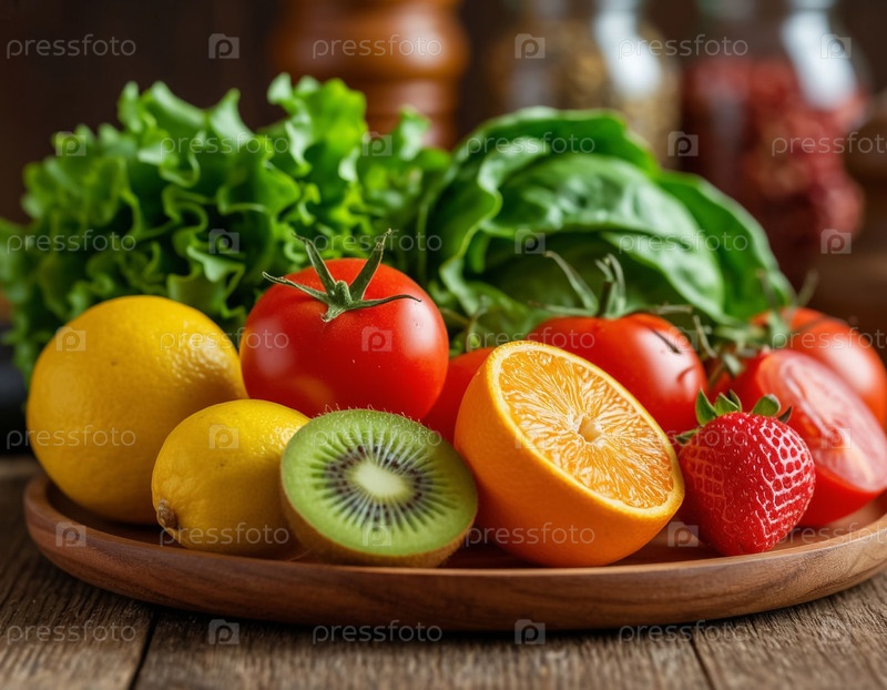 Здоровые витамины и фрукты. Создано AI