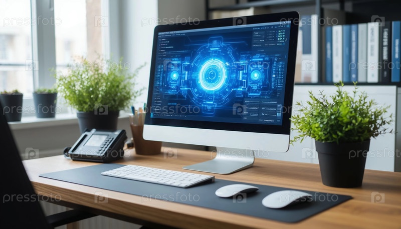 Компьютерный экран со сложными диаграммами развития ИИ и программами, созданными ИИ