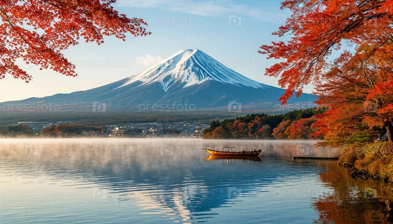 Вид на гору Фудзи в Японии, акварельная иллюстрация, созданная ИИ