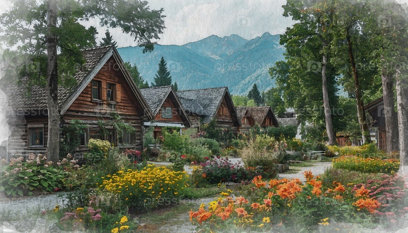 Старый дом в лесу, акварельная иллюстрация, сгенерированная ИИ